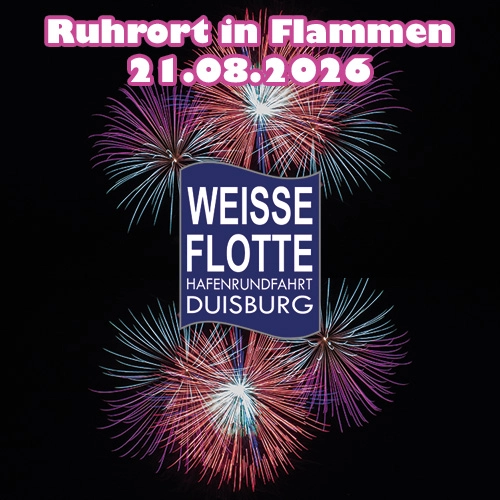 Auf geht’s zum Wahnsinns-Feuerwerk im Ruhrorter Hafen. Das Hafenfestival ist eines der größten Hafenfeste an Rhein und Ruhr. Unser DJ begleitet mit passender Musik.